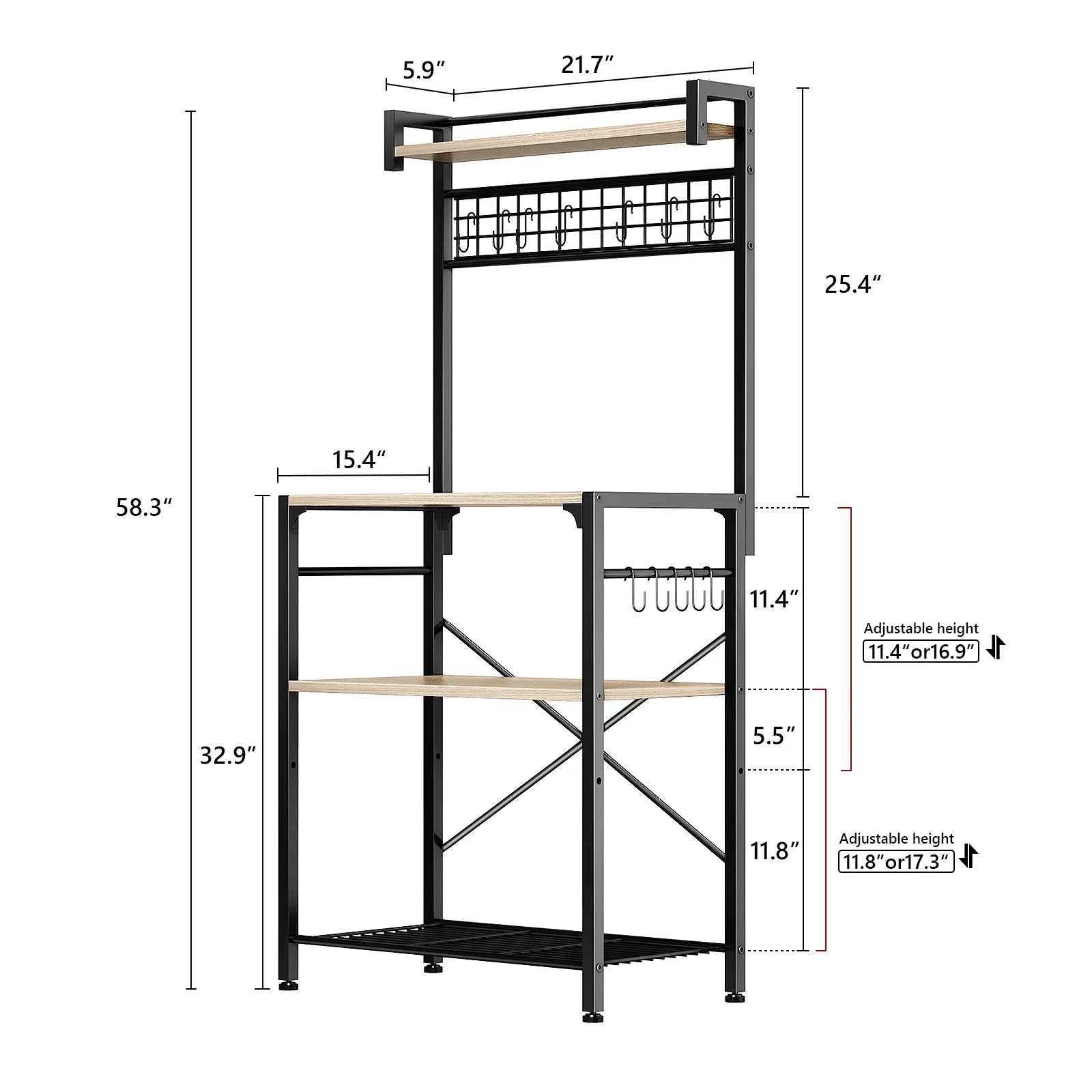 - 【Durable and Sturdy】Made from 12mm thick P2 particle board, our kitchen bakers rack combines a sturdy metal frame, X-shaped crossbars, adjustable feet, and tipover restraint devices, providing reliable stability.